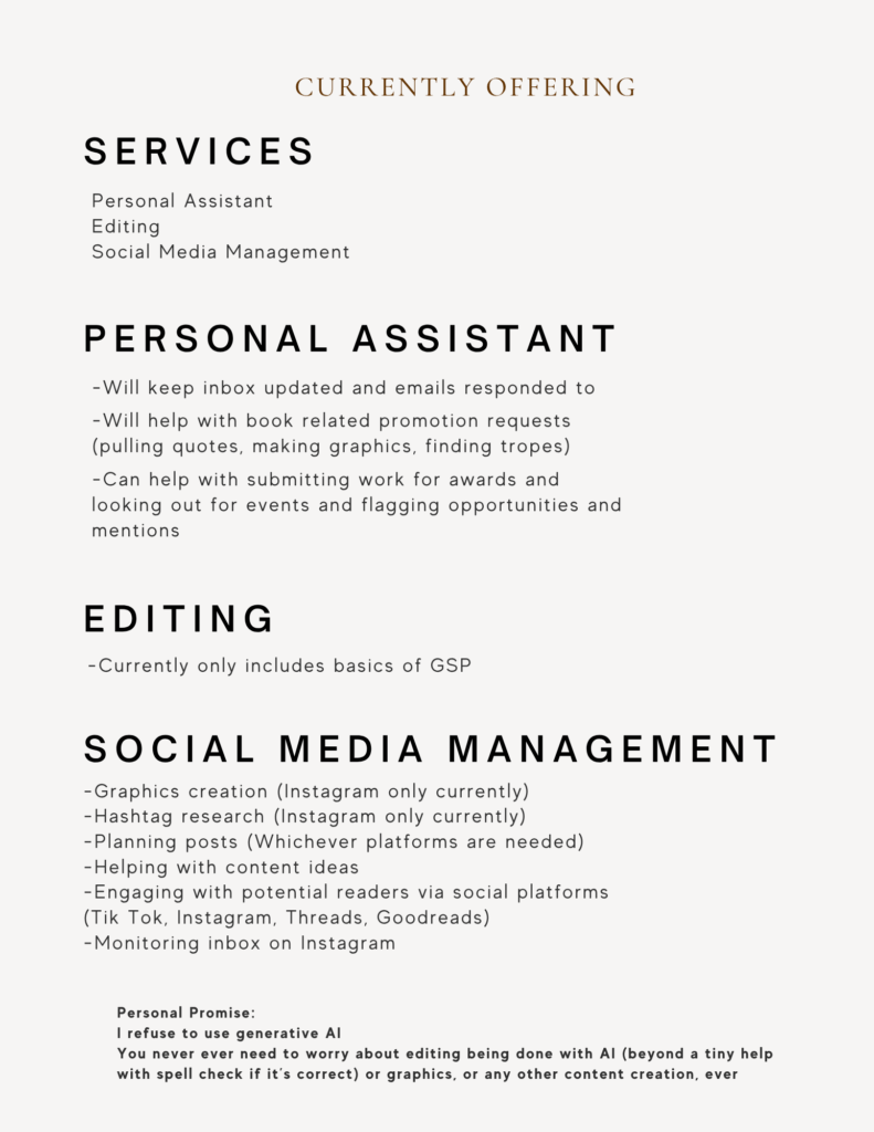 Content pulling services and sensitivity reading coming soon!